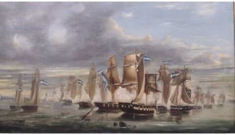 El Almirante Brown, que iza su insignia en la goleta Sarandí, está al mando de una división naval compuesta por seis naves mayores, un buque hospital y nueve cañoneras.